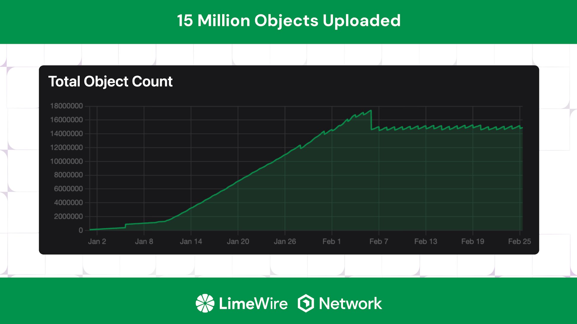 In less than 2 months after going live, the network has already surpassed 15M objects stored. That level of usage places LimeWire among the most actively used decentralized storage networks today.