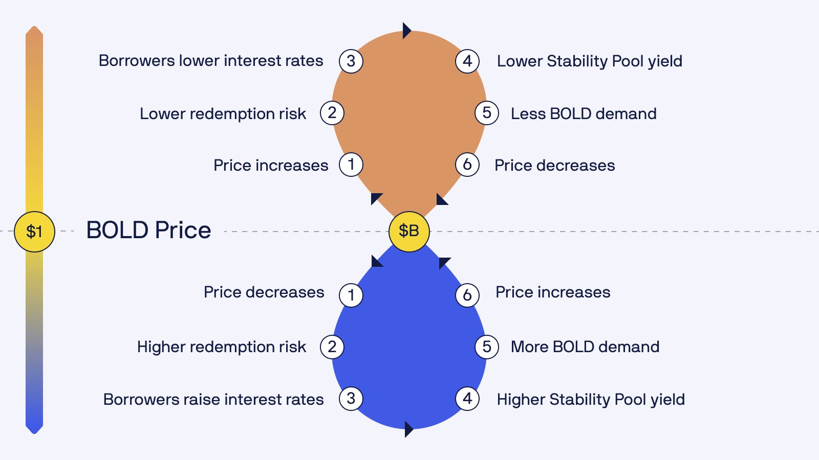 BOLD is minted against Ethereum-native collateral (ETH and major LSTs) and is designed around redemptions back to underlying collateral at $1, not discretionary intervention.