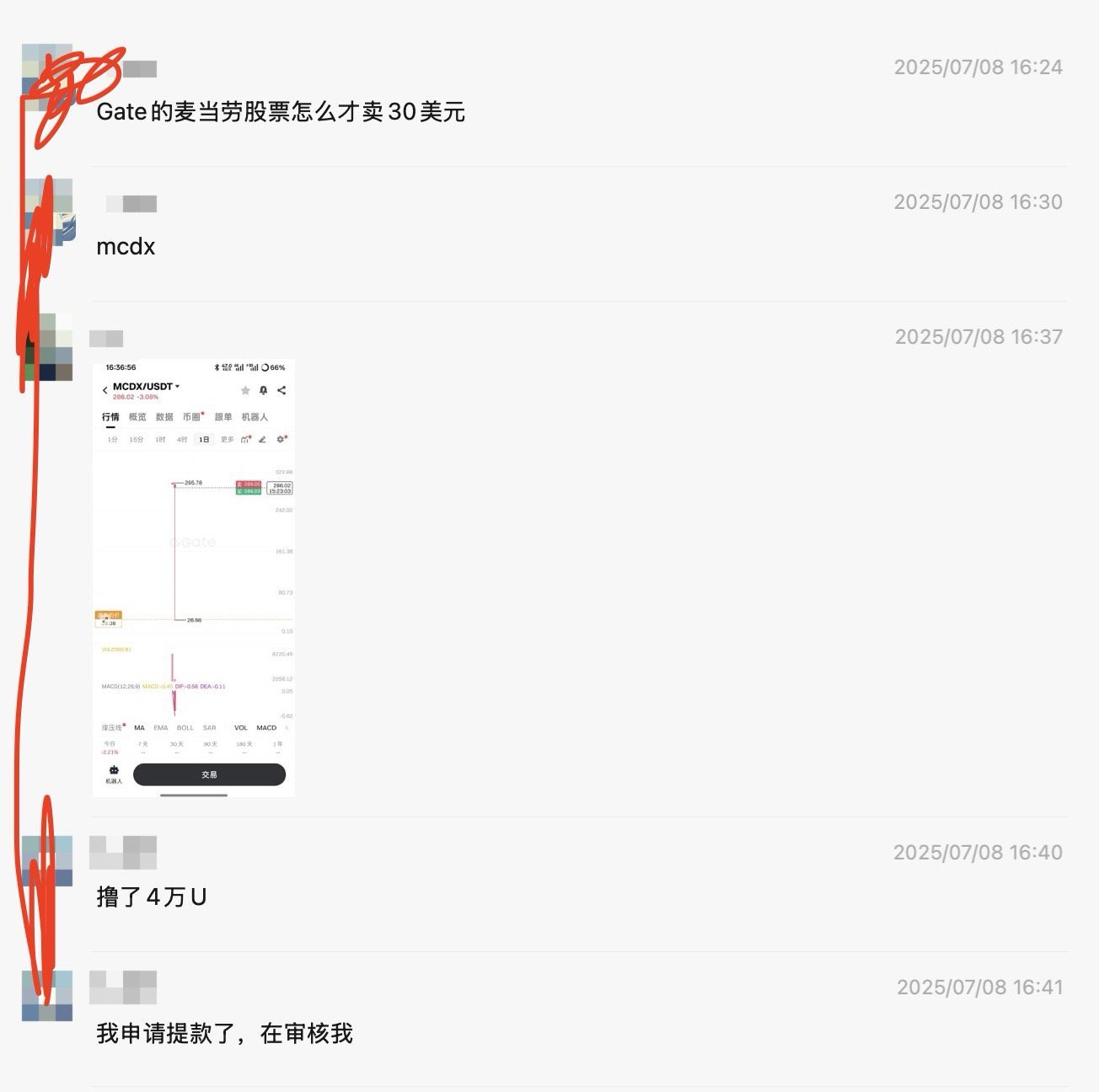 This afternoon, $MCDX (McDonald's stock) on @Gate_io de-pegged and was arbitraged by some users. It's unclear if the funds were subsequently withdrawn.