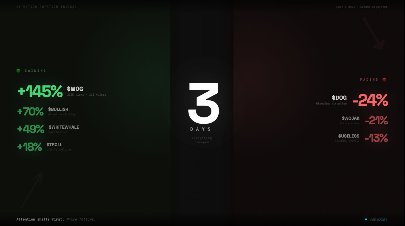 3 days in this market is a lifetime. the tokens that held the top 10 two weeks ago aren't the same ones holding it now. attention shifts first. price follows.