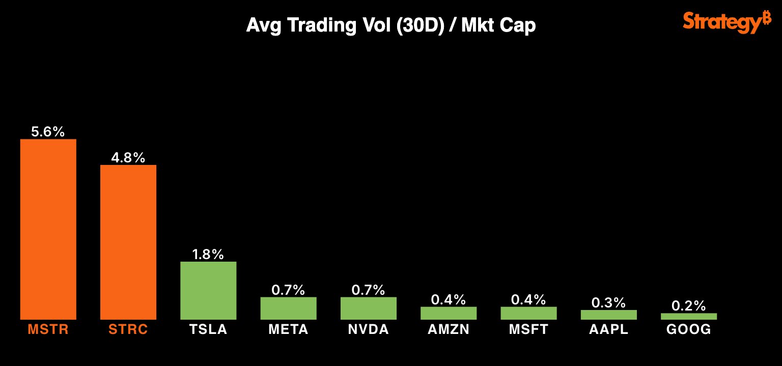 For perspective, $STRC, a preferred stock, is trading with more liquidity as a percent of market cap, than all of the Mag 7 common stocks. https://t.co/KsBFk3bsRH https://t.co/4A37RAziex