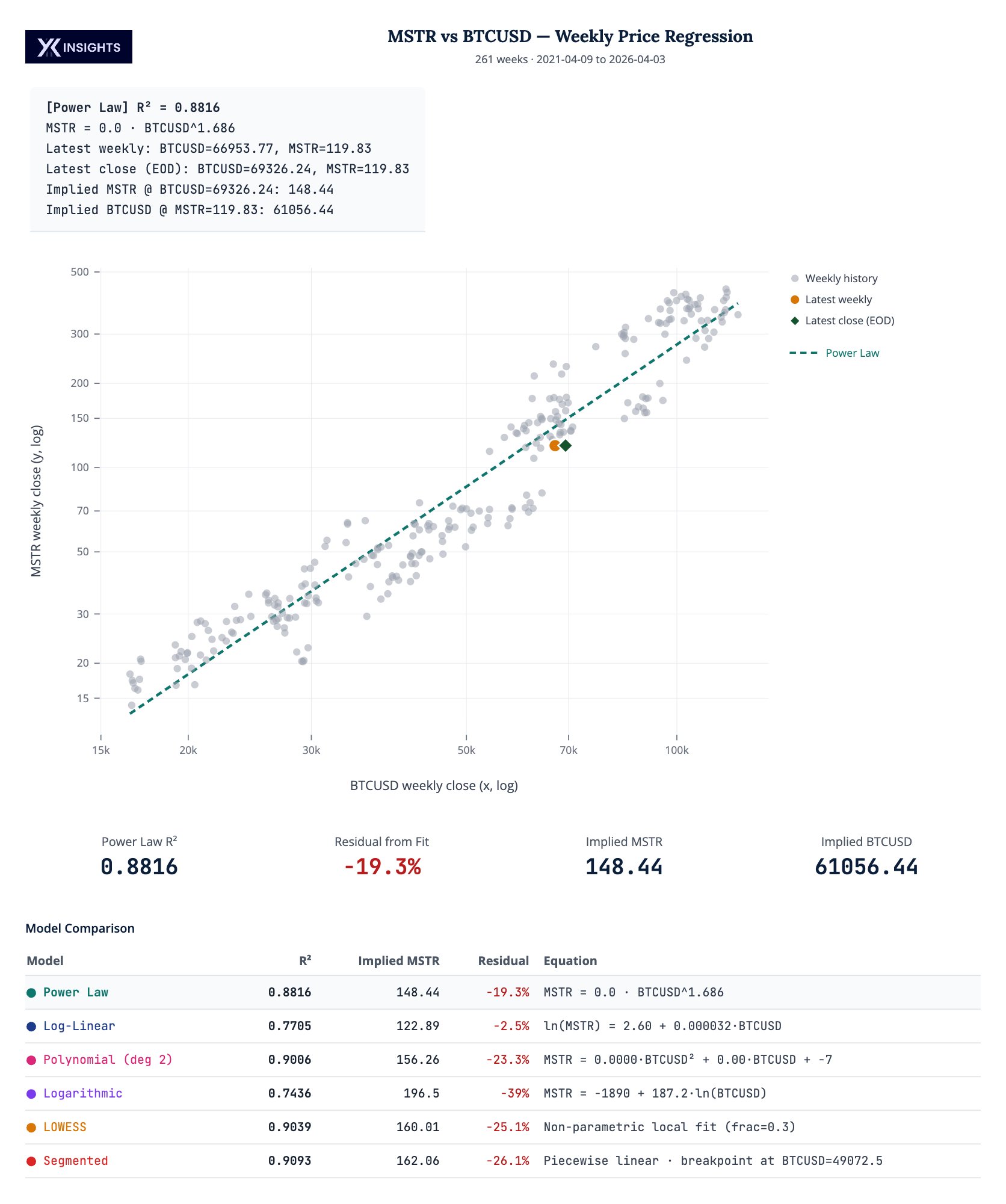 The regression implies MSTR moves more than proportionally to BTC. https://t.co/eJId5ly5RP