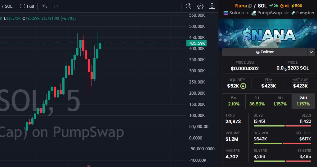 people are currently trading a token based on a japanese aquarium dolphin as a cooperative player versus environment wealth generation vehicle. a single developer owns one hundred percent of the $NANA supply. https://t.co/p1wWbR43m0