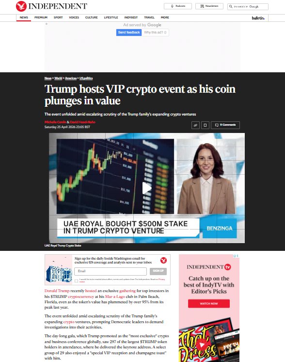 • Why it matters: private Trump family crypto income while Trump controls U.S. crypto policy.