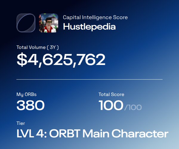 Recognized as a LVL 4: ORBT Main Character with a DeFi strategy score of 100, earning 330 ORBs.