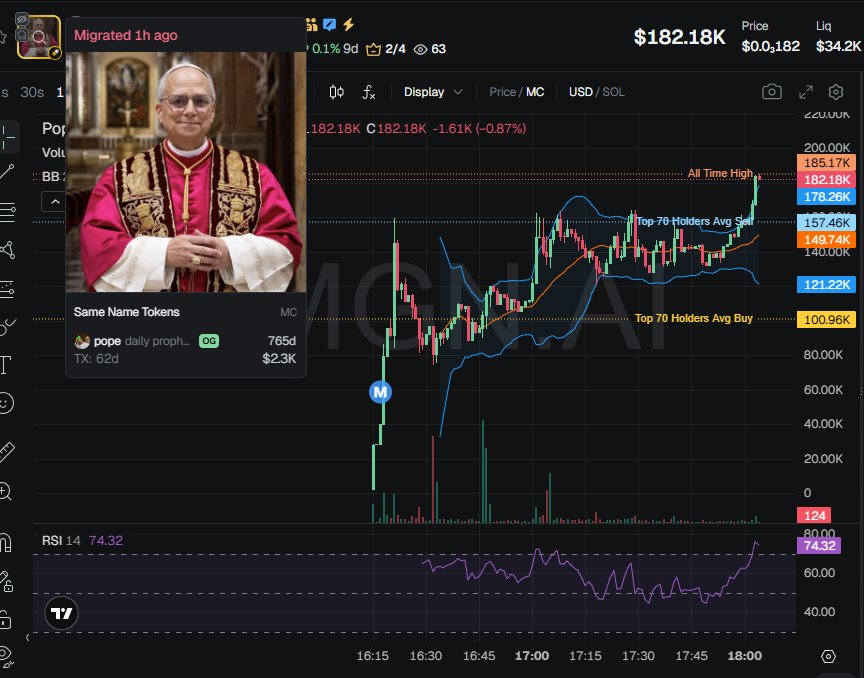 PopPepe (POPE) is a cryptocurrency launched in 2024and operates on the Solana platform. PopPepe has a current supply of 994,982,588 with 0 in circulation. The last known price of PopPepe is 0.00000502 USD and is up 0.00 over the last 24 hours. More information can be found at https://popecto.com/.