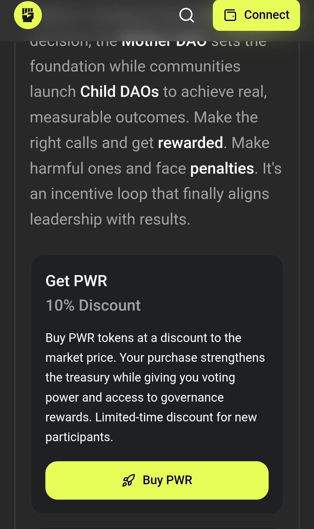 Power DAO推广PWR代币,强调治理及10%折扣。
