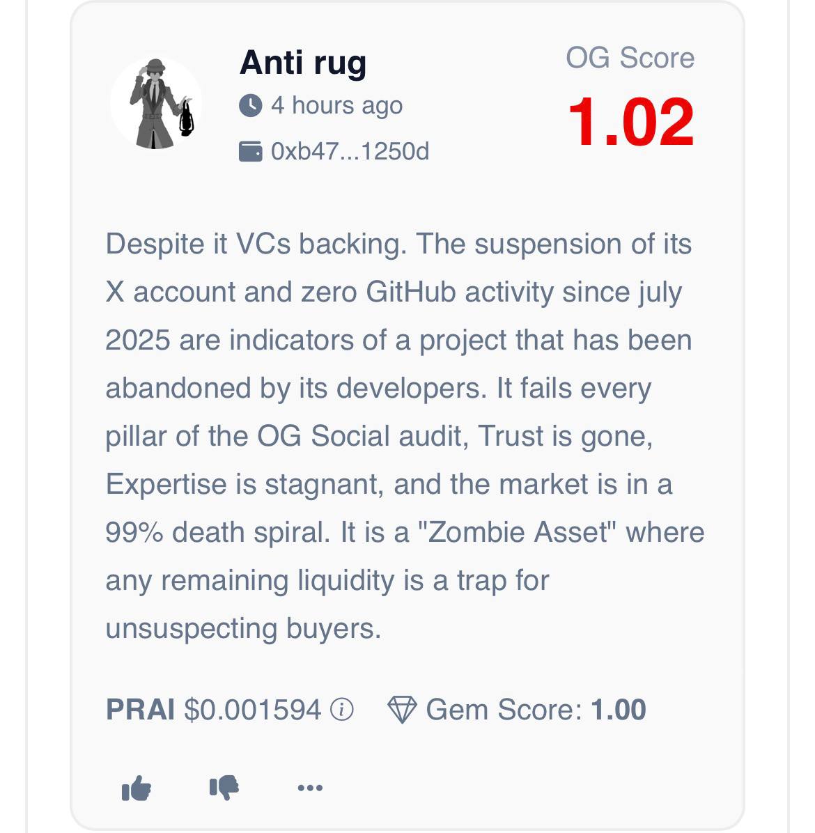 Our OG experts raise major red flags around Privasea AI $PRAI, citing broken TGE promises, abandoned development and a complete loss of community trust. This project shows signs of being effectively dead.