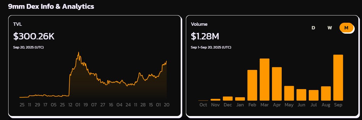 first time that the TVL on @9mm_pro revenue sharing dex has crossed above $300k since March of this year. back then, the overwhelming majority of liquidity in the dex was contributed by $9mm token having a price of $0.04 per token, 4.6x higher than today's price. additionally $PUSSY was trading for $350 per token, it is now trading at $150 (there are only 404 total tokens) this increase in TVL can be explained by the massive increase in $wETH / $USDC and $wETH / $cbBTC coming to support $wXCH and community-backed meme coins. currently many https://t.co/FuO3GaFiGH campaigns are paying premium dollar in premium assets to provide liquidity in the dex that pays 9mm token holders their share of the revenue produced by the protocols. if the value of those 2 protocol tokens were the same price they were in March, the TVL would be well over $500,000. if $XCH goes where our community believes it certainly can, than the TVL will be in the 10's of millions, and so too with the weekly volumes. continue building. continue aligning incentives.