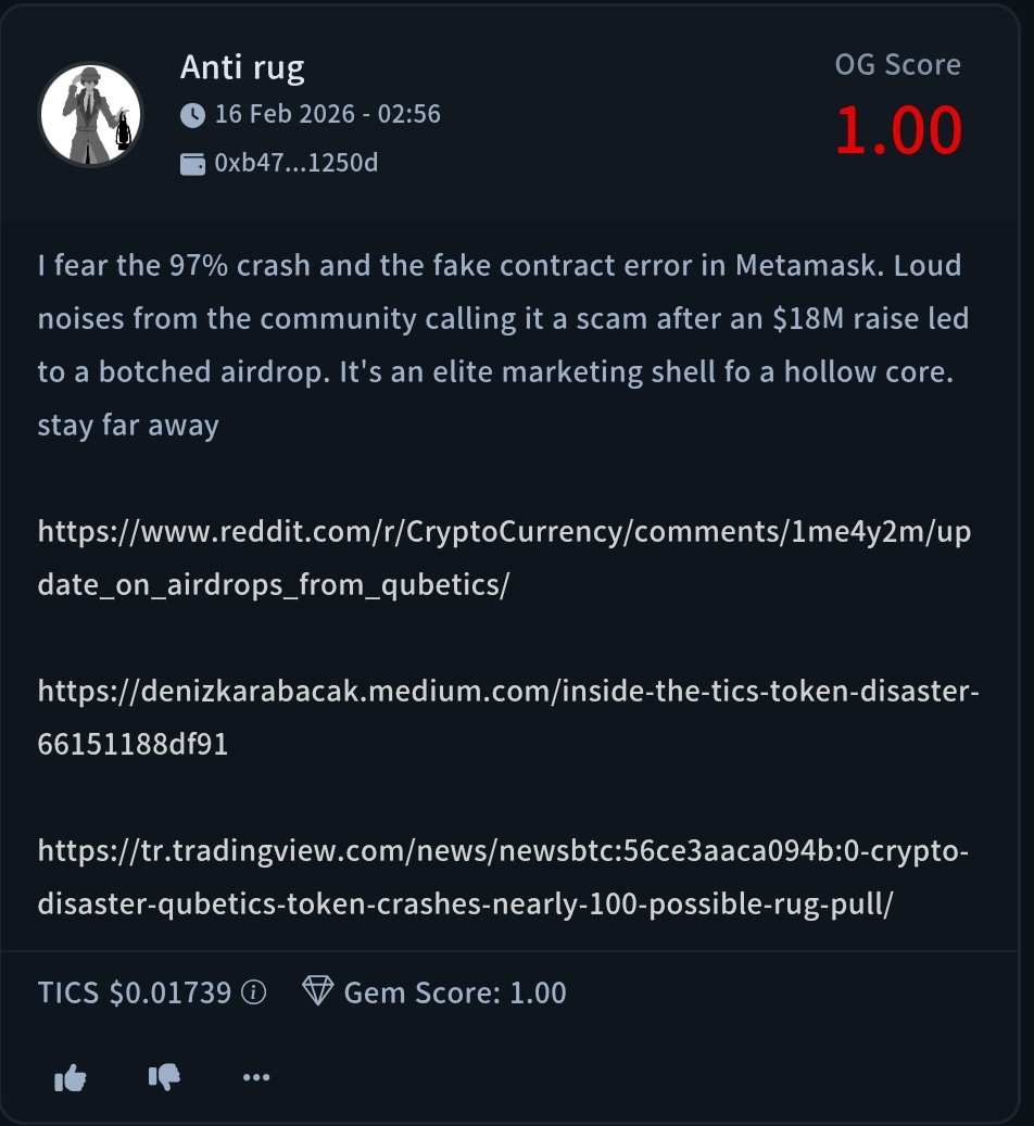 🗣️ Our Social Auditors classify Qubetics ($TICS) as Extreme Risk, Structural & Trust Breakdown.