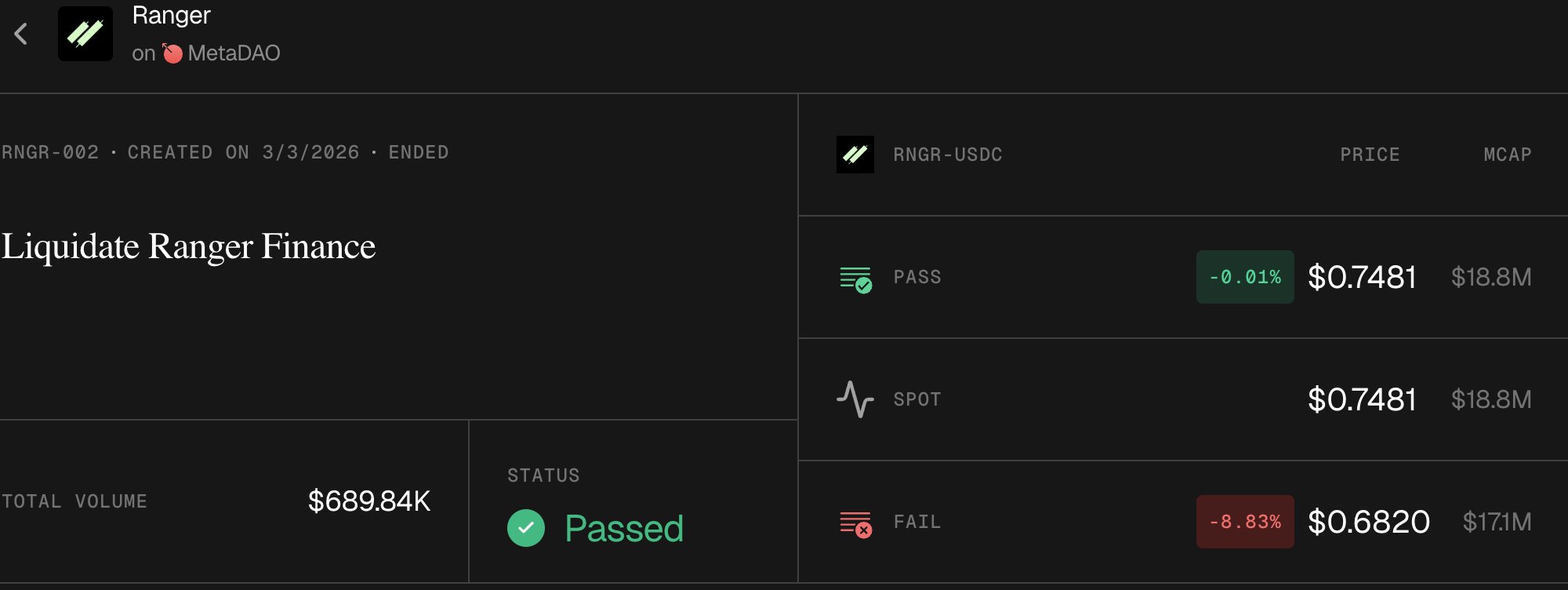 Ranger originally launched its token using @MetaDAOProject's futarchy based governance system, a model designed to allow markets to guide governance decisions.