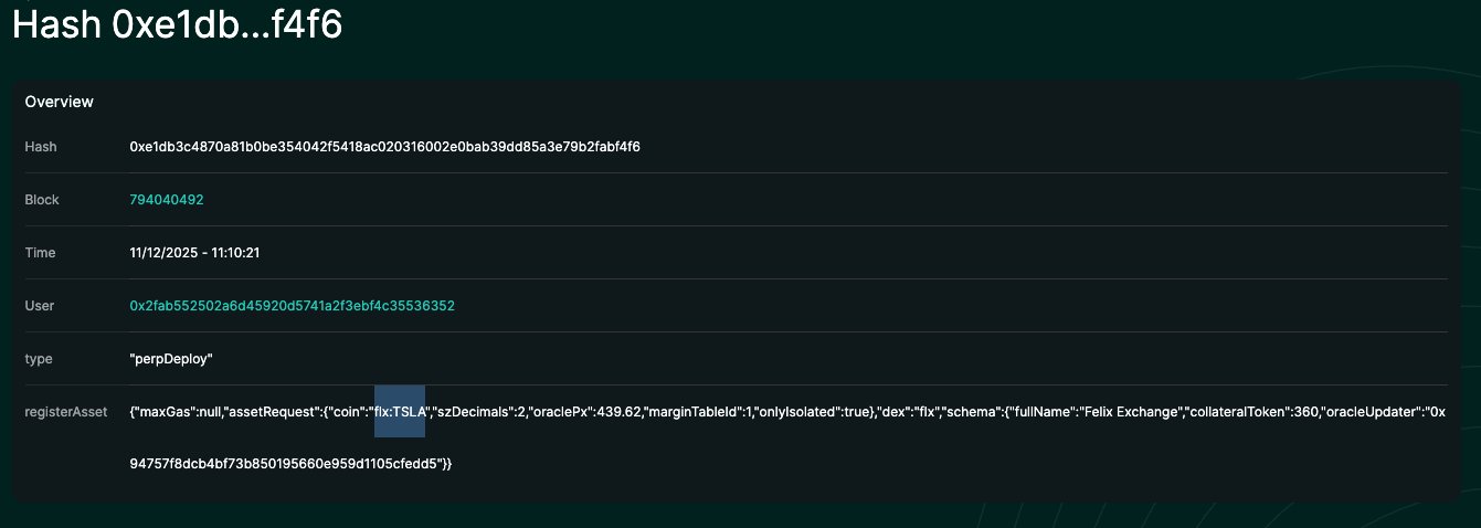 🚨@felixprotocol deployed their HIP-3 DEX on mainnet