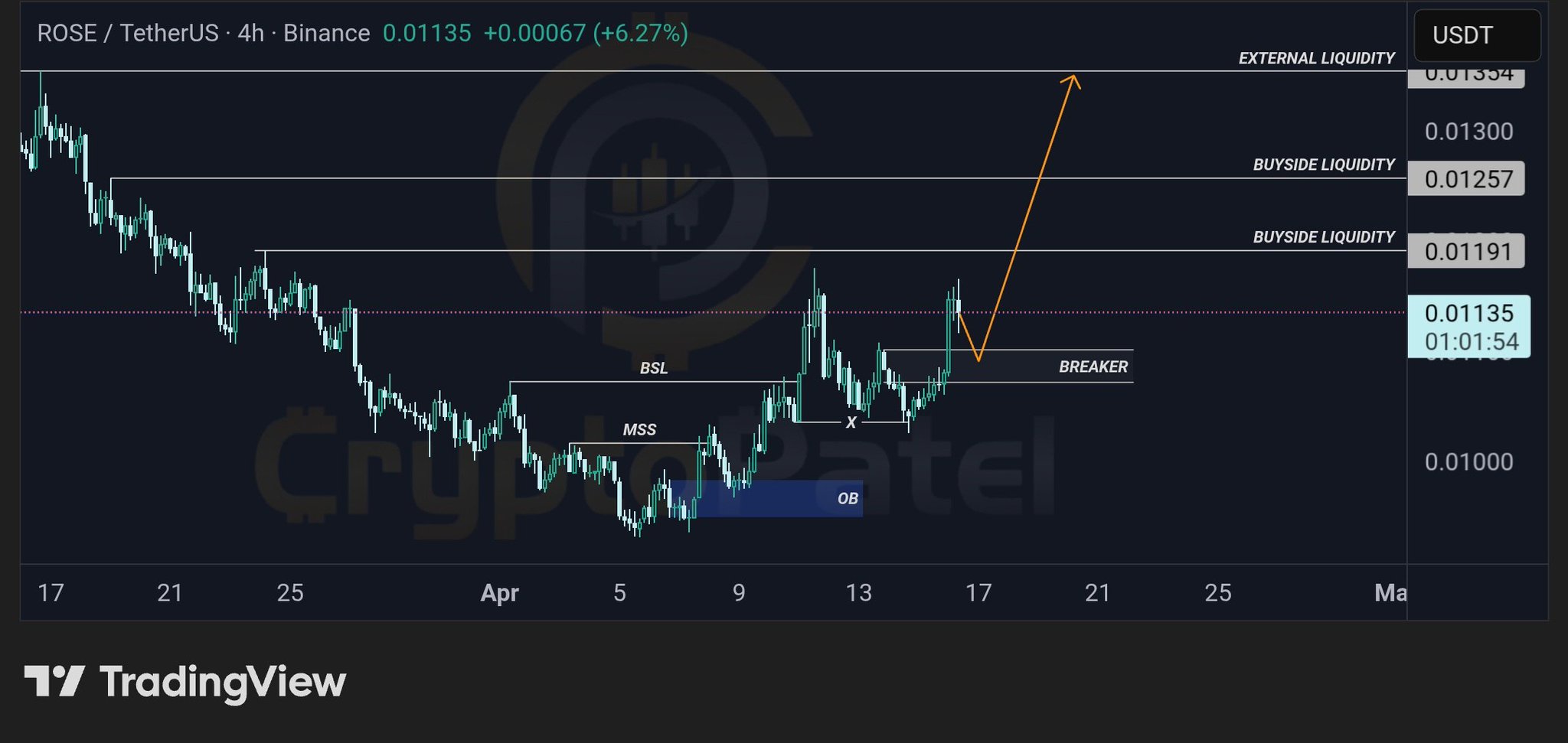 #ROSE has formed a bullish structure after MSS, with strong reaction from demand and a breaker acting as support, positioning for continuation toward upside liquidity.