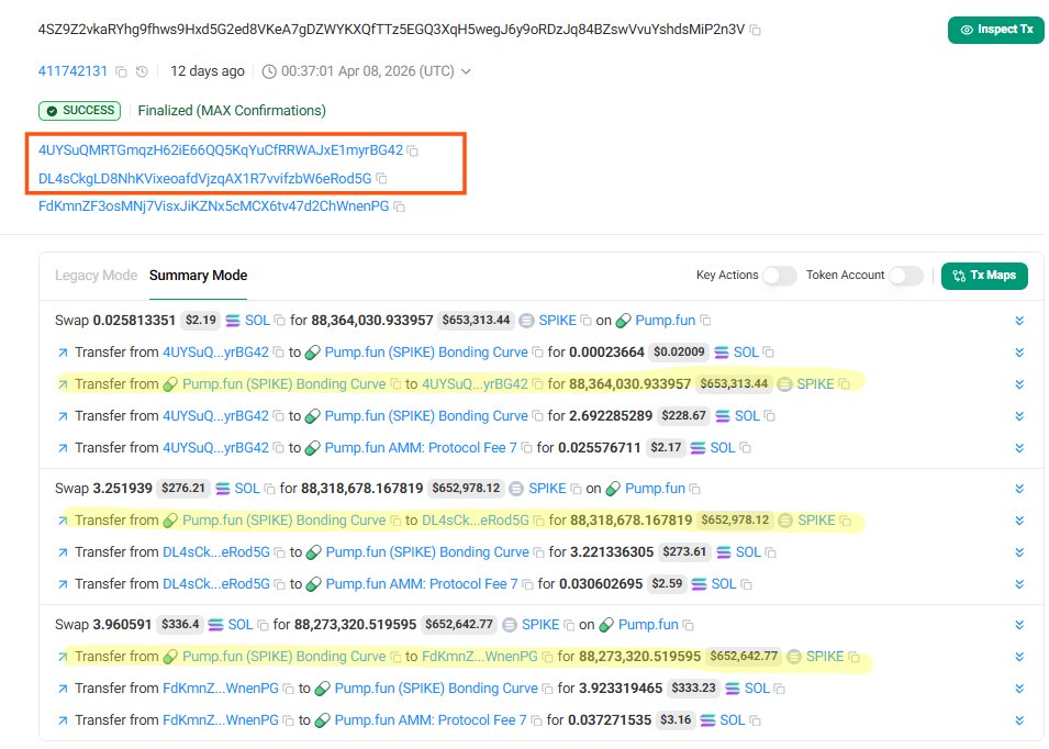 $SPIKE (CA BFiGUxnidogqcZAPVPDZRCfhx3nXnFLYqpQUaUGpump) is a bundled scam, don't buy, stay away. https://t.co/Z3GwBdTkgK