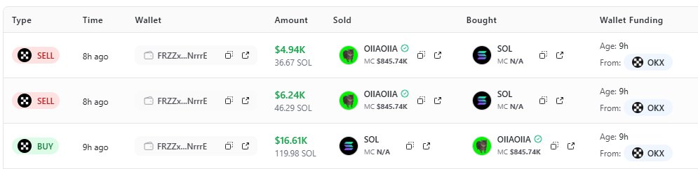 One fresh wallet on Stalkchain fresh wallet feed bought about $17k worth of $Oiiaoiia only to sell everything for $16k making a loss of $1k