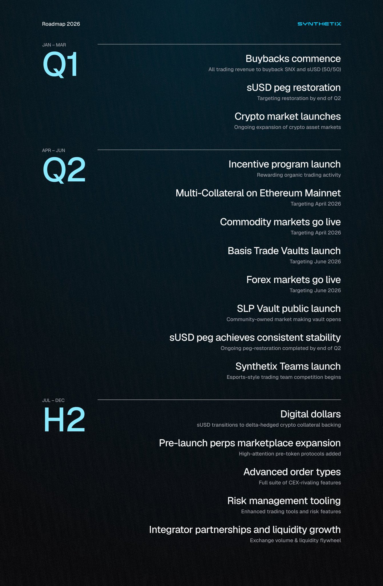 In 2026, we're charting a course that will make Synthetix the go-to perps venue on Ethereum Mainnet, rivaling centralized exchanges in performance and security.