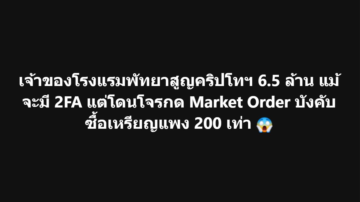 A hotel owner in Pattaya had his crypto account hacked. Even though it had 2FA, the hacker managed to wipe out a portfolio worth 6.5 million THB without transferring a single baht out.