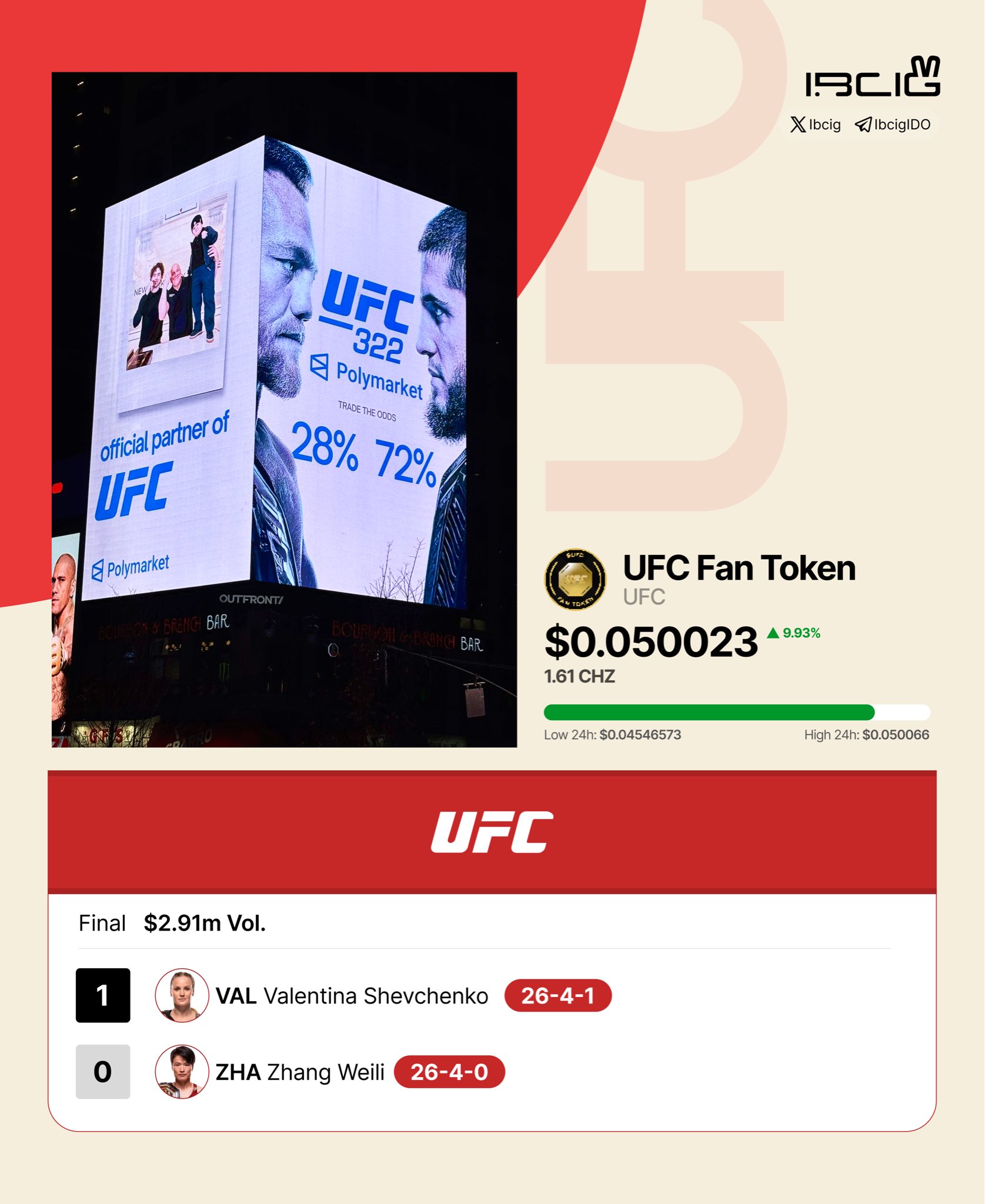 Earlier, $UFC from @FanTokens up almost 10% after UFC Fight Club announced Polymarket as its exclusive prediction partner. Soon the fights will feature a live Polymarket scoreboard showing realtime odds.