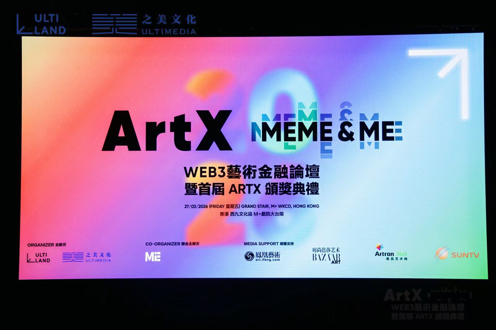 The event was jointly hosted by ULTILAND and ULTIMEDIA Co., Ltd., with @MetaEraCN as co-organizer. Centered on the theme “Meme & Me,” it brought together top guests and industry professionals from the global art world, financial sector, and Web3 space, creating a value bridge between the traditional art system and the emerging Web3 cultural and creative ecosystem.