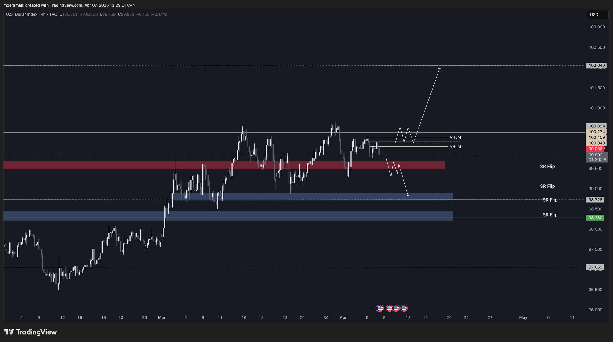 If we do pull back into the blue box, I would expect it to hold and lead to another leg higher or a reclaim of 100.39.