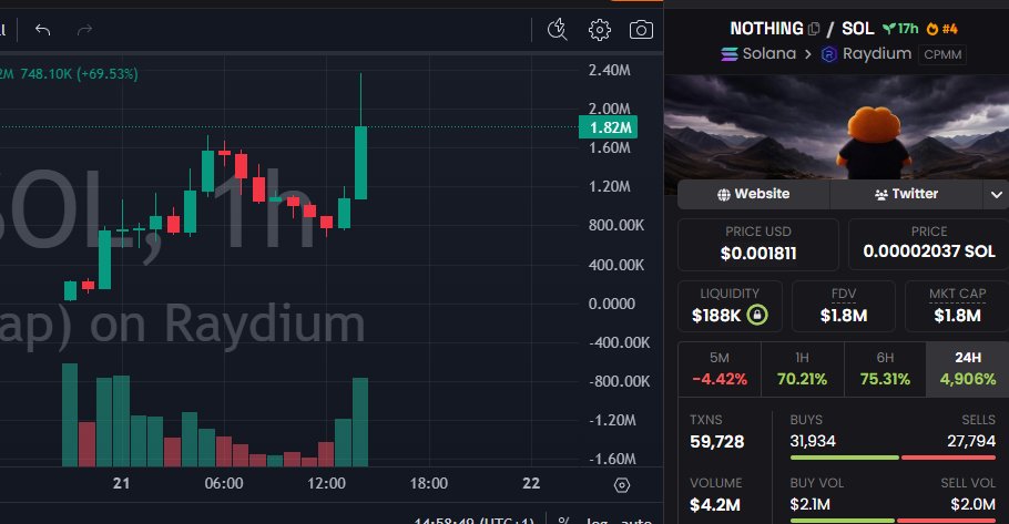 $nothing hits $1m market cap (+40% against market trend) while solana drops below $70, establishing a specific "market hedge" narrative.