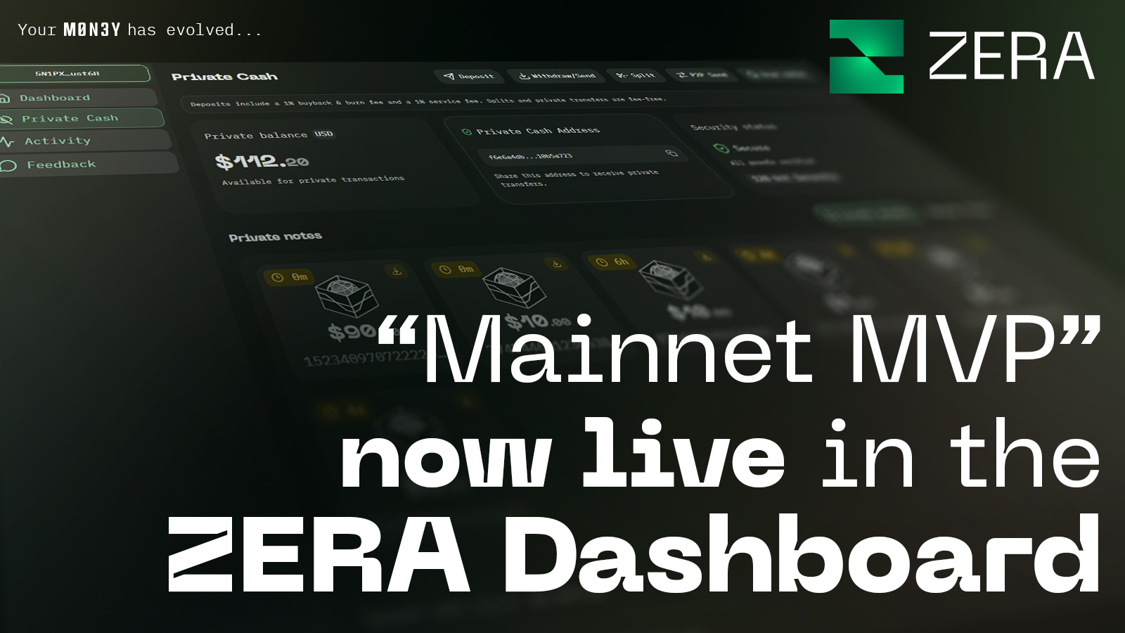 Mainnet MVP is now live in the ZERA Dashboard.