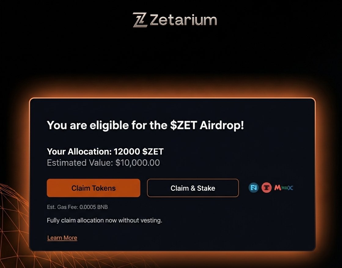 Out of that, 960,000 $ZET is allocated to early contributors rewards for those who supported the project from the beginning.