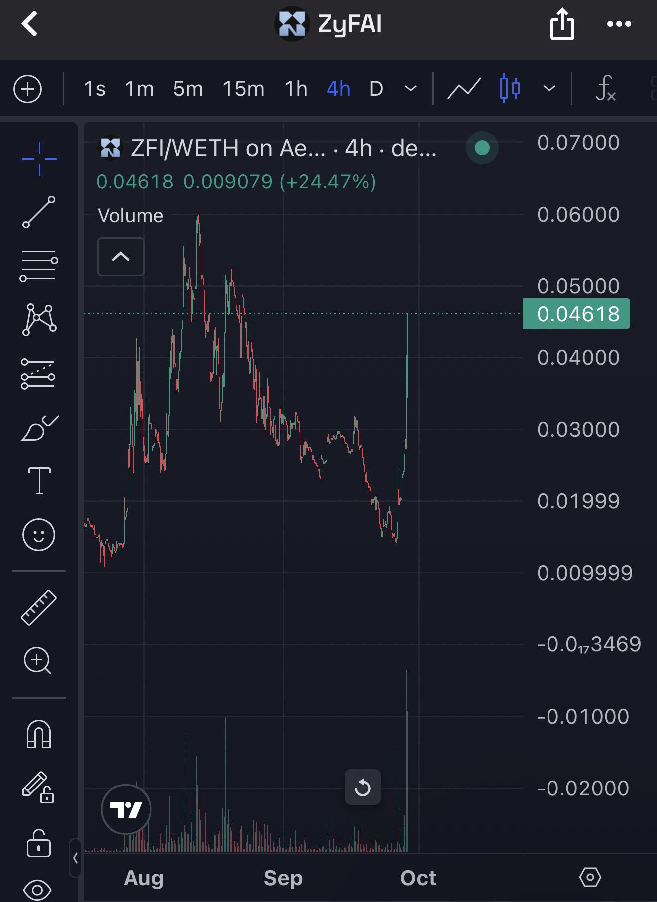 The tweet suggests ZFI/Plasma might be about to rise, and the image shows a recent significant surge in ZFI.