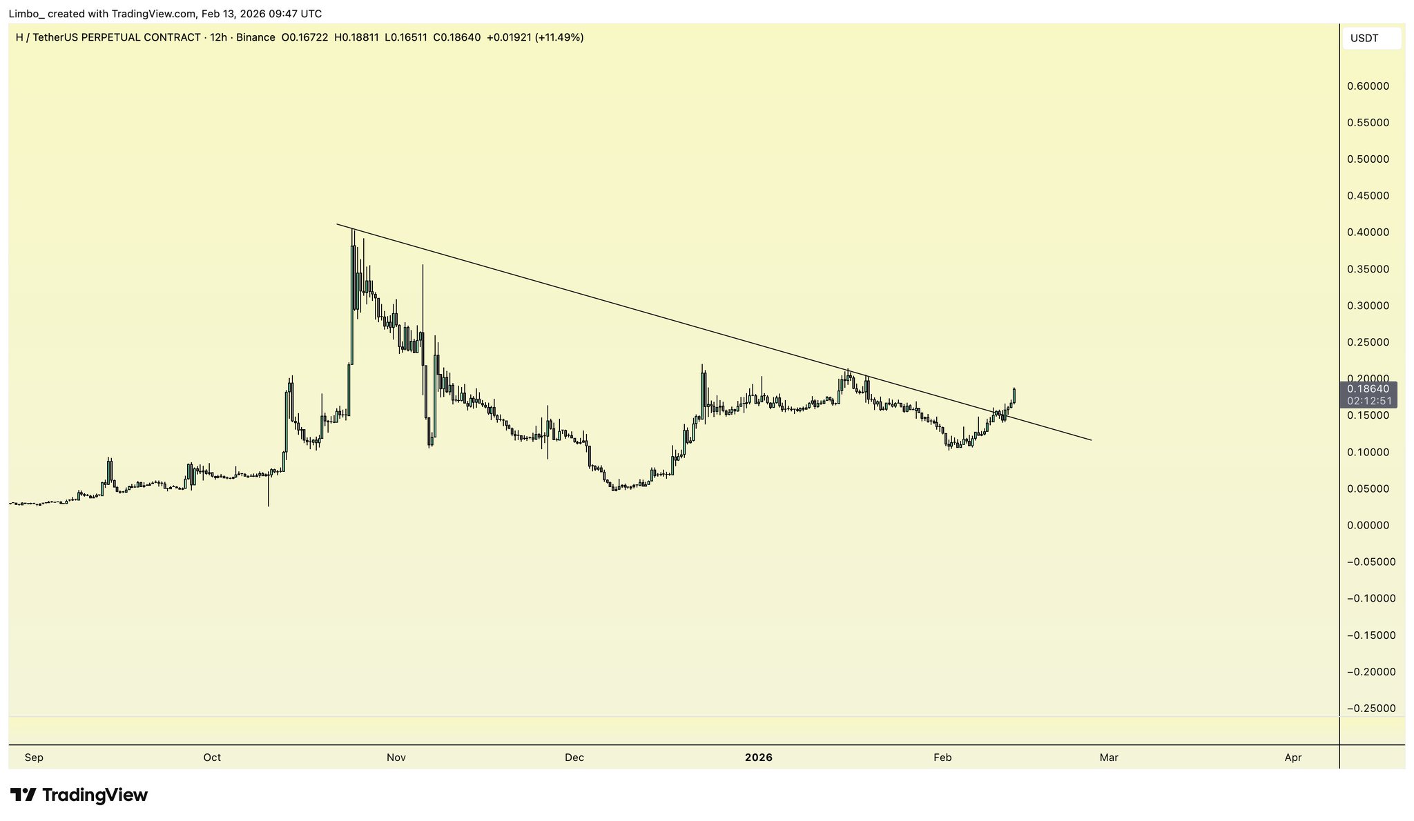 Limbo TA_Analyst Trader B143.35K @cryptolimbo$H is one of the better looking charts rn! The FA supports it too, using $H as actual gas for verifications and credentials creates a burn that supports price. Worth keeping an eye! https://t.co/28qMh22iE0