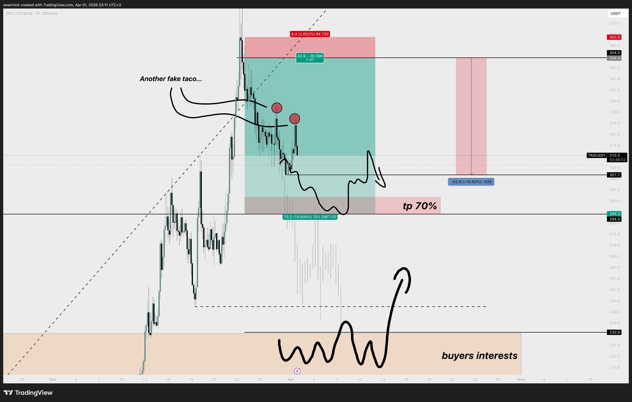 5 2 559 Оригинал >Тренд TAO после выпускаЧрезвычайно медвежий