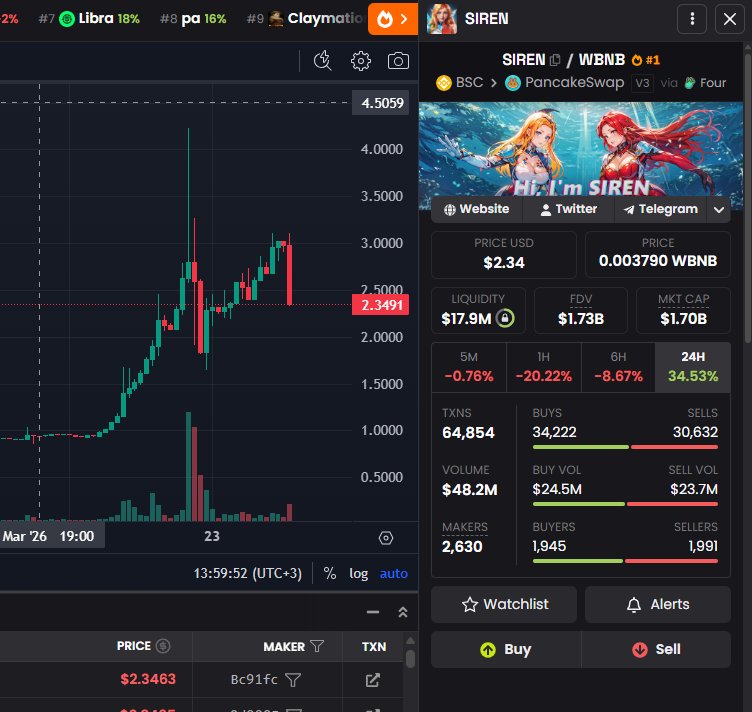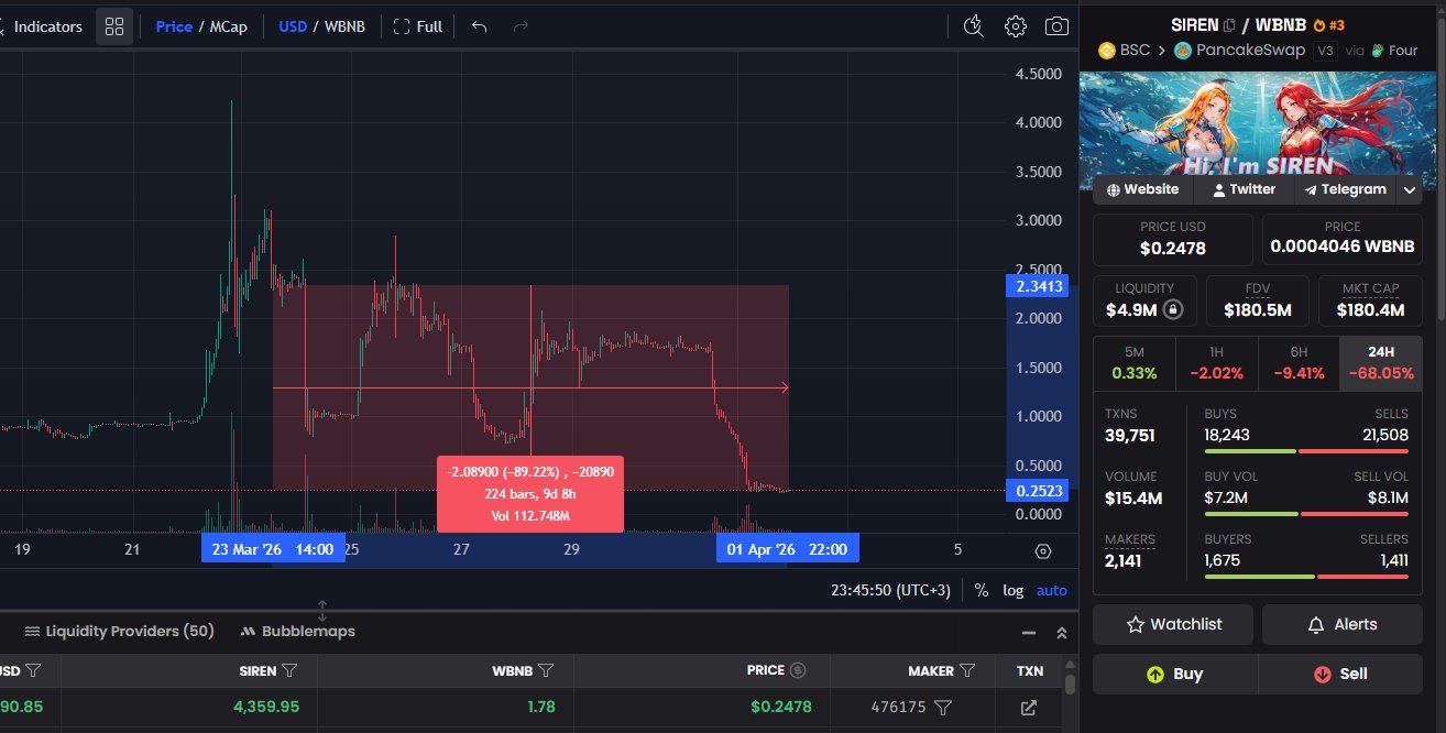 - 发布后SIREN走势极度看跌