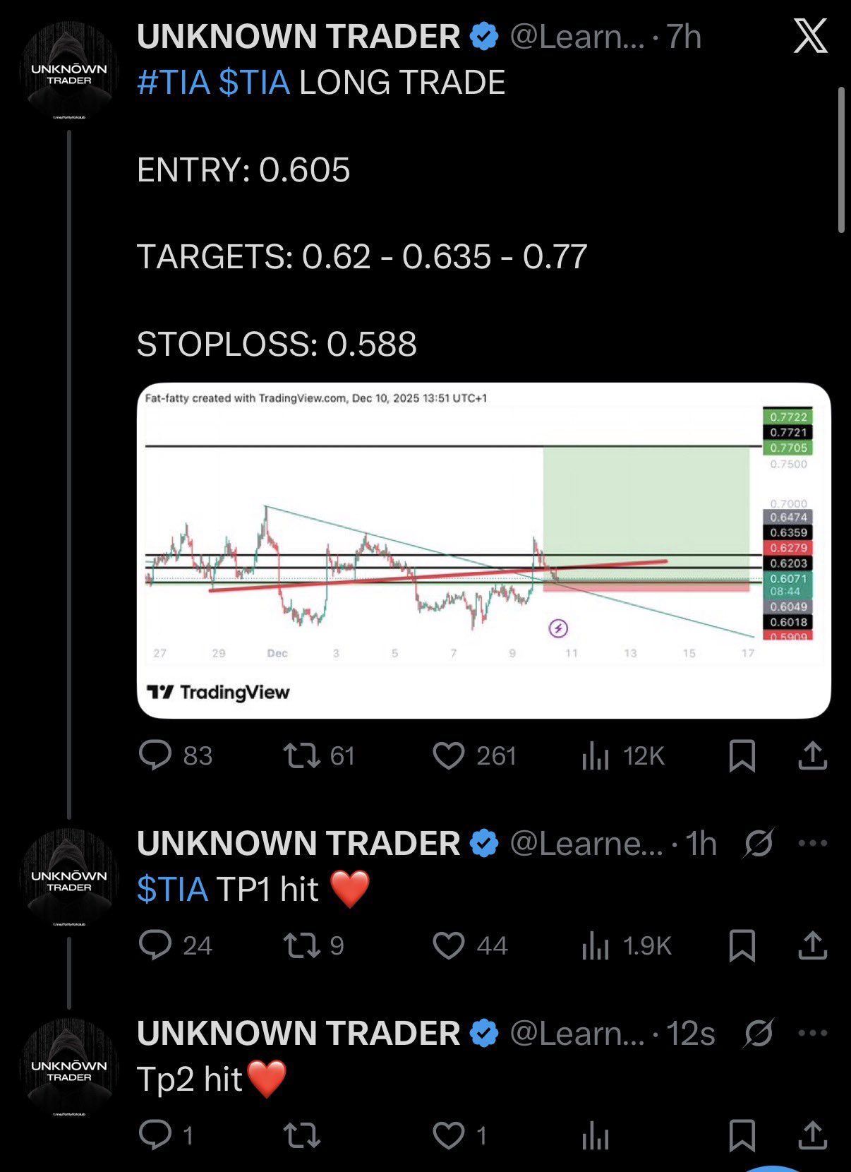 UNKNOWN TRADER Trader TA_Analyst B119.38K @LearnernoearnerAll CT is about these days is trying to flex wins or when they are right just to sell you into there paid group and farm engagement while I just post my trades and update tps in the comments😭 You wouldn’t believe how many people here on twitter lives off paid group fees, commissions, promos ETC I just think everyone should be humble here and if you really deserve the attention for your hard work then god will give it to you Either way crypto is a mental game, if you win a lot and start hyping yourself too much then you will end up losing, if you lose a lot and get depressed then you know what you are doing anymore. Better keep yourself in the middle and leave your emotions by the door when you start trading
