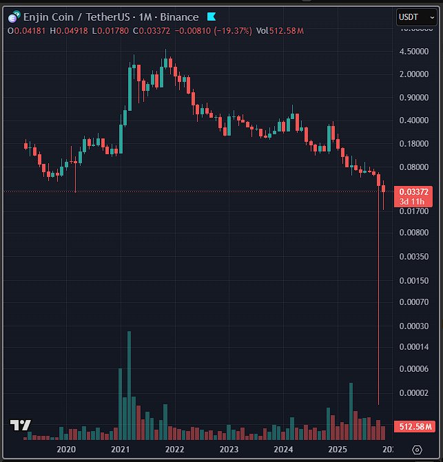 عمر كريبتو - Omar Crypto TA_Analyst Trader C81.76K @MrOmarCrypto🧵 Thread | Enjin… Technology alone is no longer enough | Token $ENJ Imagine a project that spent 7 years on “innovation” in gaming… only to end up in a free fall? The Enjin project today shows that technology without adoption… is worth nothing. The idea is not about Enjin’s “price”… It’s about the market moment that reveals the truth: Any project without actual demand collapses even if it’s technically strong. ☑️ Enjin had a massive narrative: ✔️ NFTs cards for games ✔️ Tools for developers ✔️ Easy integration between digital assets and the gaming world. But the narrative never turned into user behavior or activity within the system. 💯 In the falling market, lack of liquidity exposes projects that rely on a “story” without usage. ☑️ Enjin was exactly a victim of this: The technology exists… But there are no people using it in a way that gives it weight. ☑️ The sharp drop was not just a price move: It was the result of weak real demand. The market punishes any project that loses balance between building the product and building a community that actually uses it. ☑️ Market psychology plays a big role: When confidence erodes, everything collapses faster than you expect. Even projects once considered “future‑ready” become excess weight that the market quickly sheds. ☑️ Bottom line: Technology is important… but it’s not the decisive factor. Demand, usage, and an active community are what make a project sustainable. Enjin is a clear example that “technical building” without “usage” is just a hanging promise. ❌ Don’t look at the price… look at the reason. ✔️ What gives a project life? ✅ If you can’t find it… market death is just a matter of time. If you found the tweet informative Give it a retweet or like… ❤️🔁 Thank you for supporting the content 🌹