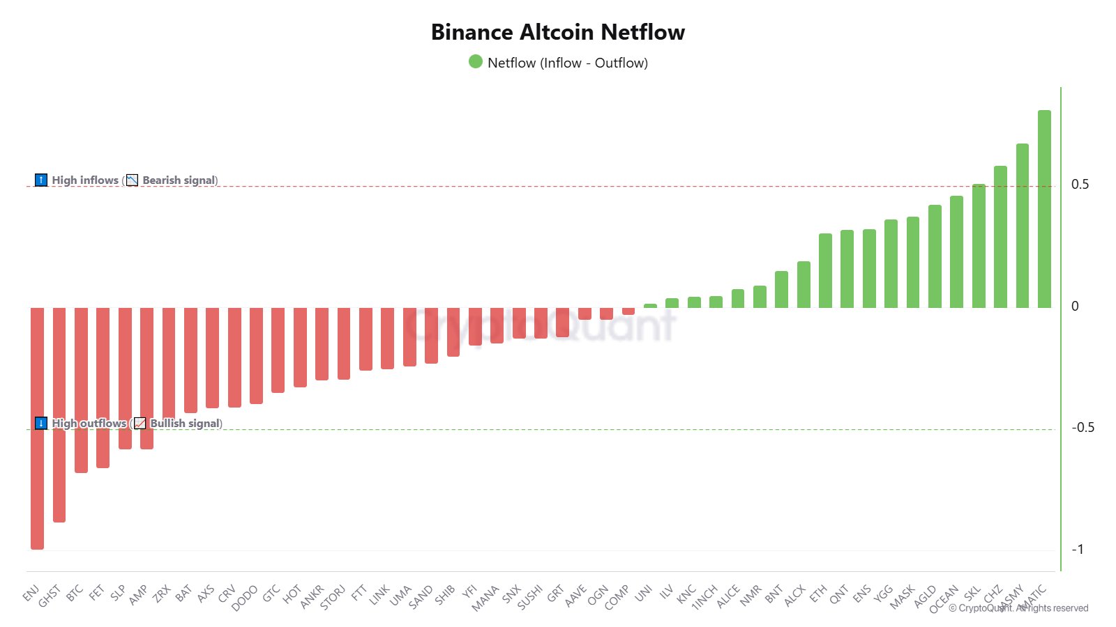 CW TA_Analyst OnChain_Analyst B16.74K @CW8900Coins saw outflows from Binance include $ENJ, $FET, $AMP, $SLP, and $UNI. Outflows from the exchange are a bullish signal. On the other hand, $MATIC, $JASMY, and $CHZ saw higher inflows. https://t.co/P30cYIYwUU