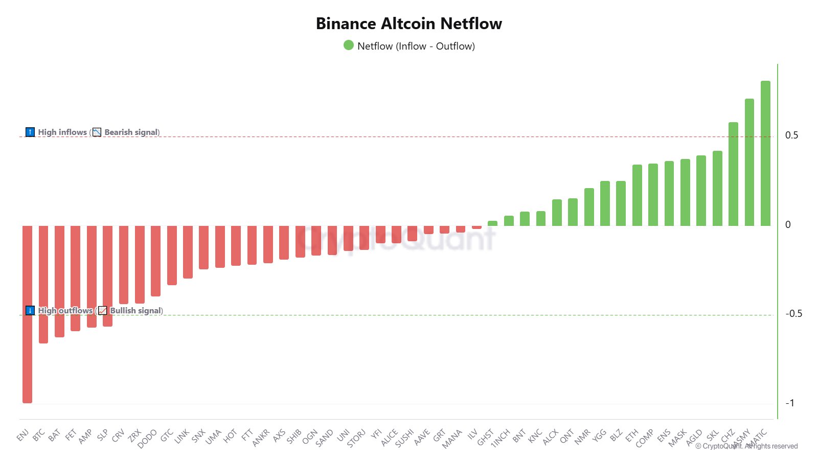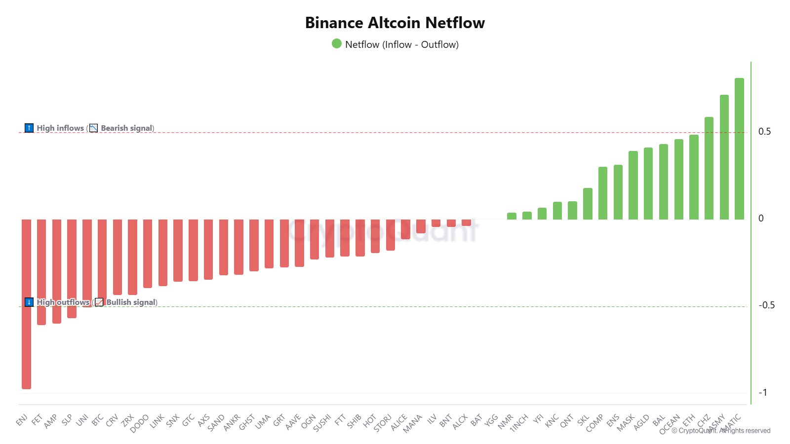 CW TA_Analyst OnChain_Analyst B16.74K @CW8900Coins saw outflows from Binance include $ENJ, $BTC, $BAT, $FET, $AMP, and $SLP. Outflows from the exchange are a bullish signal. On the other hand, $MATIC, $JASMY, and $CHZ saw higher inflows. https://t.co/TKRiFaMoCW