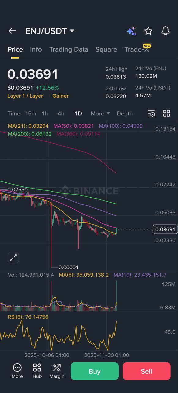 - 預警解讀ENJ warning rank fell to #138 (↓9), social anomaly score 50/100 dropped primarily by 11.3%, no sentiment polarization or KOL shift, corresponding price and hotness both declined.