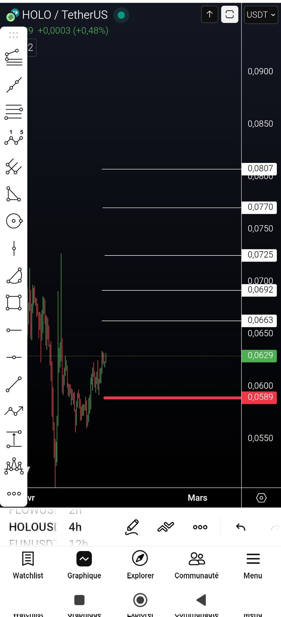 3 0 390 閱讀原文 >釋出後HOLO走勢極度看漲HOLO shows strong performance, futures data is positive, RSI is oversold, expected to break out in the short term, target price $0.075+.