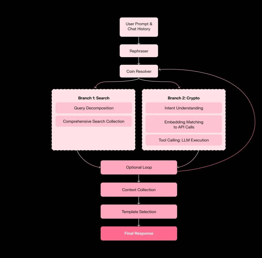 brey Founder Researcher B45.14K @0xBreynEmbedding‑Driven Reasoning Semantic embeddings help SERA • choose the right data sources (APIs, on‑chain feeds, sentiment, search) • route prompts more effectively • run parallel tool calls instead of sequential chains Result: Faster and smarter responses (<45s latency)