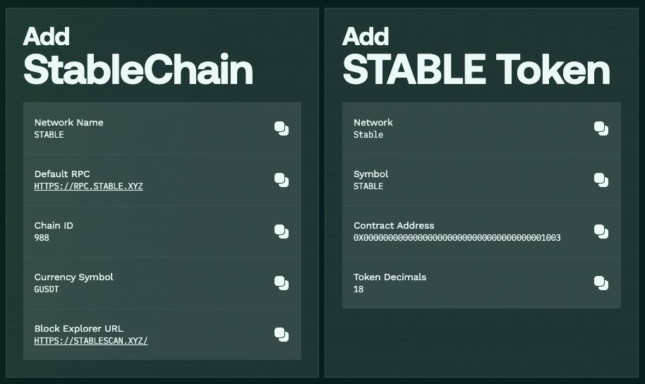 Mr. Lin 霖先生 |Pendle Maxi D6.91K @BTCLINComplete guide to claim the STABLE airdrop: 1) First, follow the parameters below, add a custom network in your wallet, then add the $STABLE token. Default RPC: https://t.co/arQkVendd1 Chain ID: 988 Currency Symbol: gUSDT Block Explorer URL: https://t.co/H9Tkz8Iinl Stable Contract Address: 0x0000000000000000000000000000000000001003 2) Use stargate/chainferry (https://t.co/NFq8TZxaPU) to bridge some USDT to the Stable chain (if you need additional gUSDT, you can go to https://t.co/jRbchXiTG1 to swap USDT for gUSDT). 3) Go to Merkl, connect your wallet, find the Stable section, and claim the airdrop. 4) If you have added the custom token, you should see the token in your wallet. Then go back to stargate and bridge $STABLE back to the BSC Binance Smart Chain, where you can sell it.