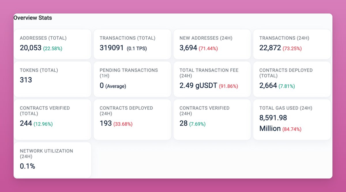 Ignas | DeFi DeFi_Expert Influencer C157.29K @DefiIgnas2 days since Stable mainnet launch: - 2.49 gUSDT paid in tx gas fees (what's the P/E here?) - $1,4k USD in TVL - 0.1 TPS - 20k total addresses but.. - ... 3.7k added in 24h Much success. https://t.co/A1omv5mYB7