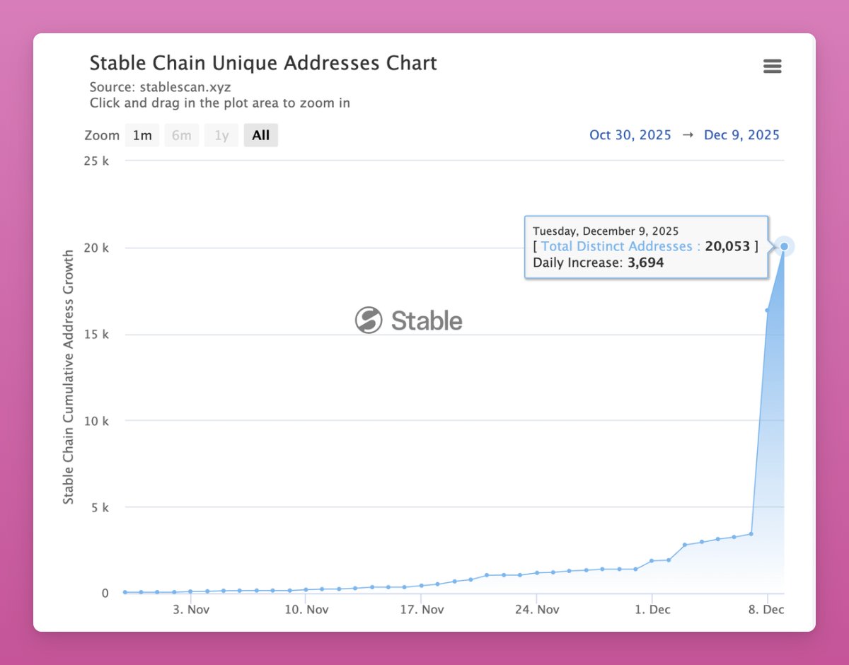 141 52 10.15K 閱讀原文 >釋出後STABLE走勢看跌Stable mainnet launched two days ago, and all on-chain metrics perform terribly; the author sarcastically calls it a “huge success.”